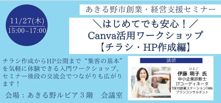 【満員御礼】あきる野市 創業・経営支援セミナー Canva活用ワークショップ