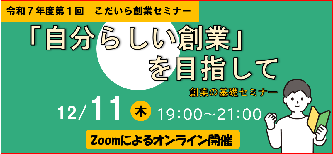 【小平市主催】こだいら創業セミナー「自分らしい創業を目指して」創業の基礎セミナー
