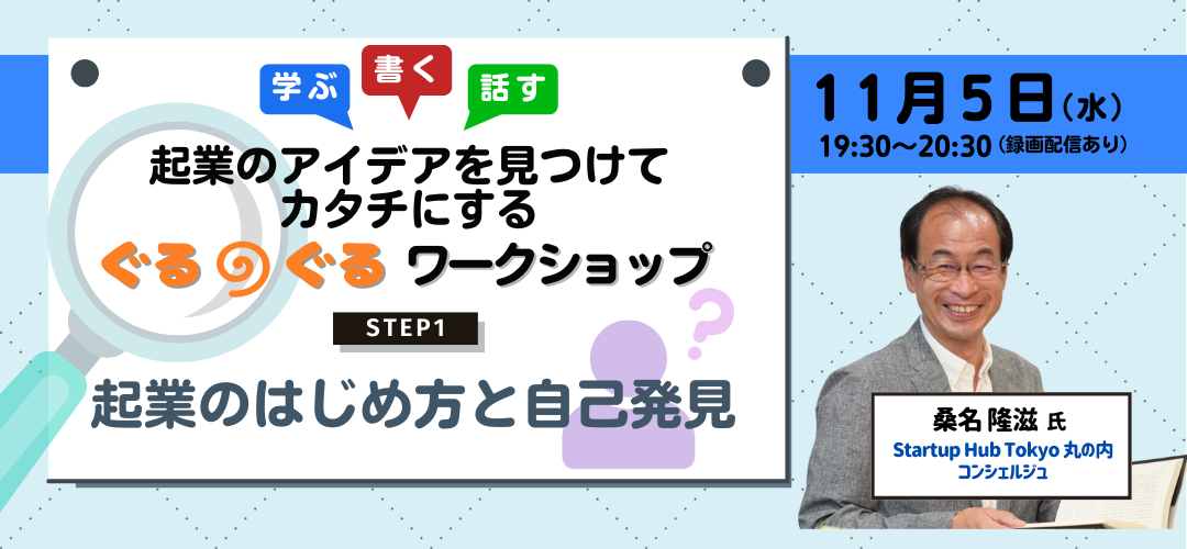 起業のアイデアを見つけてカタチにするぐるぐるワークショップ<STEP1:起業のはじめ方と自己発見>