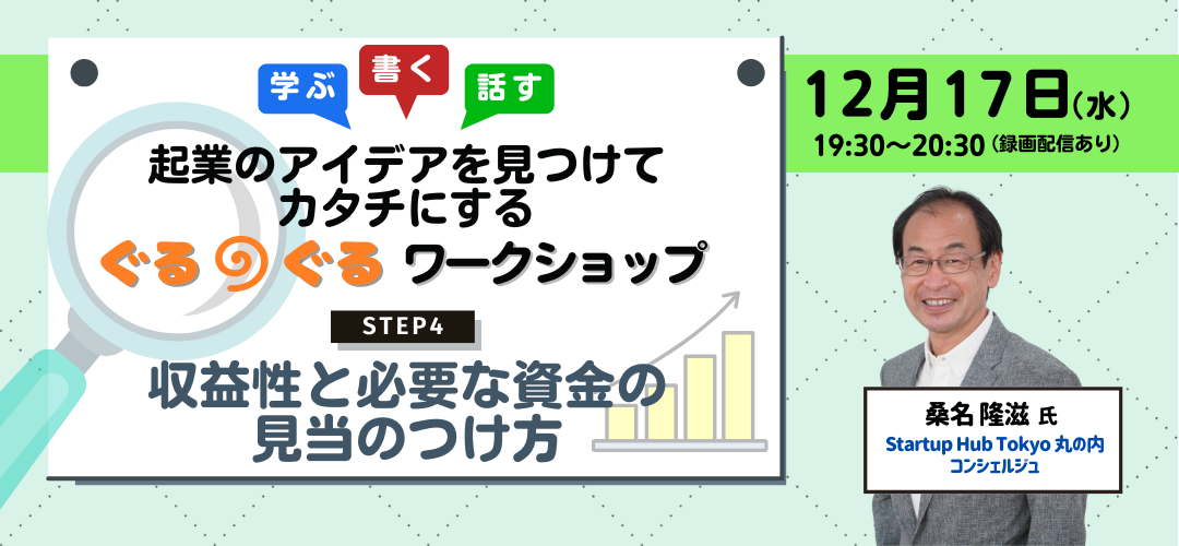 起業のアイデアを見つけてカタチにするぐるぐるワークショップ<STEP4:収益性と必要な資金の見当のつけ方>