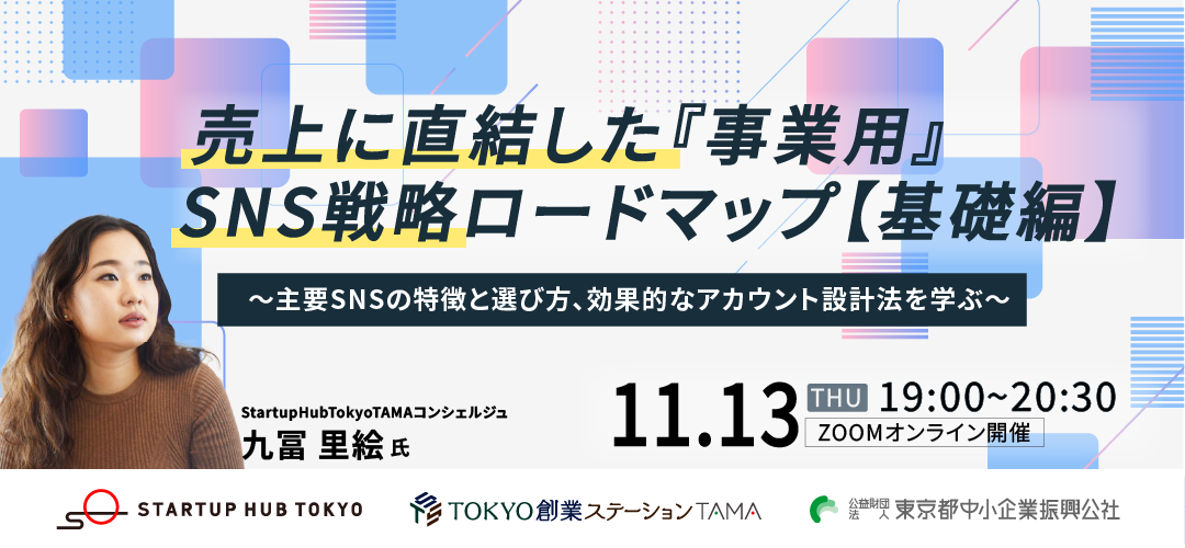 登壇者の九冨氏は、Startup Hub Tokyo TAMAの起業コンシェルジュです! SNSの運用にお悩みの方はぜひコンシェルジュ相談にて九冨氏にご相談ください。