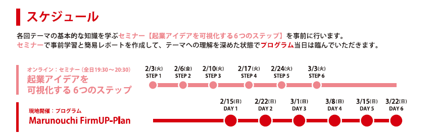 2026/02/15 13:00~16:00 (12:50開場 場所 : Startup Hub Tokyo 丸の内 イベントスペース) 2026/02/22 13:00~16:00 (12:50開場 場所 : Startup Hub Tokyo 丸の内 イベントスペース) 2026/03/01 13:00~16:00 (12:50開場 場所 : Startup Hub Tokyo 丸の内 イベントスペース) 2026/03/08 13:00~16:00 (12:50開場 場所 : Startup Hub Tokyo 丸の内 イベントスペース) 2026/03/15 13:00~16:00 (12:50開場 場所 : Startup Hub Tokyo 丸の内 イベントスペース) 2026/03/22 12:00~17:00 (11:50開場 場所 : Startup Hub Tokyo 丸の内 イベントスペース) |