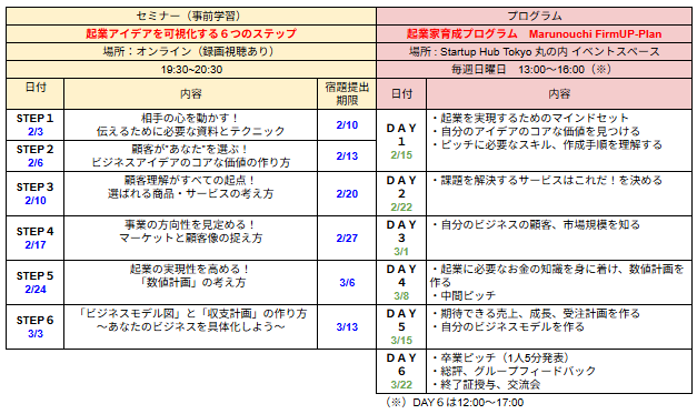 ・本プログラムは原則、オフライン(Startup Hub Tokyo 丸の内 イベントスペース)開催となります。
