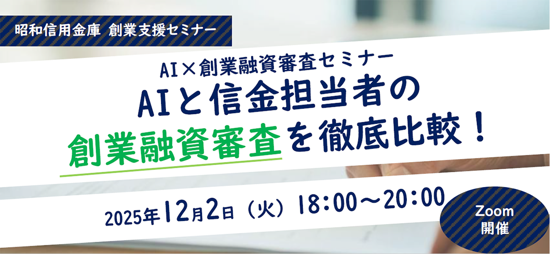 【昭和信用金庫 主催】 AI×創業融資審査セミナー ~AIと信金担当者の創業融資審査を徹底比較~