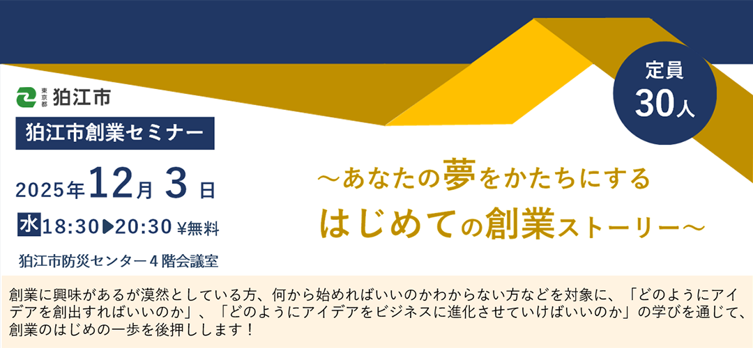 【狛江市主催】狛江市創業セミナー ~あなたの夢をかたちにする はじめての創業ストーリー~