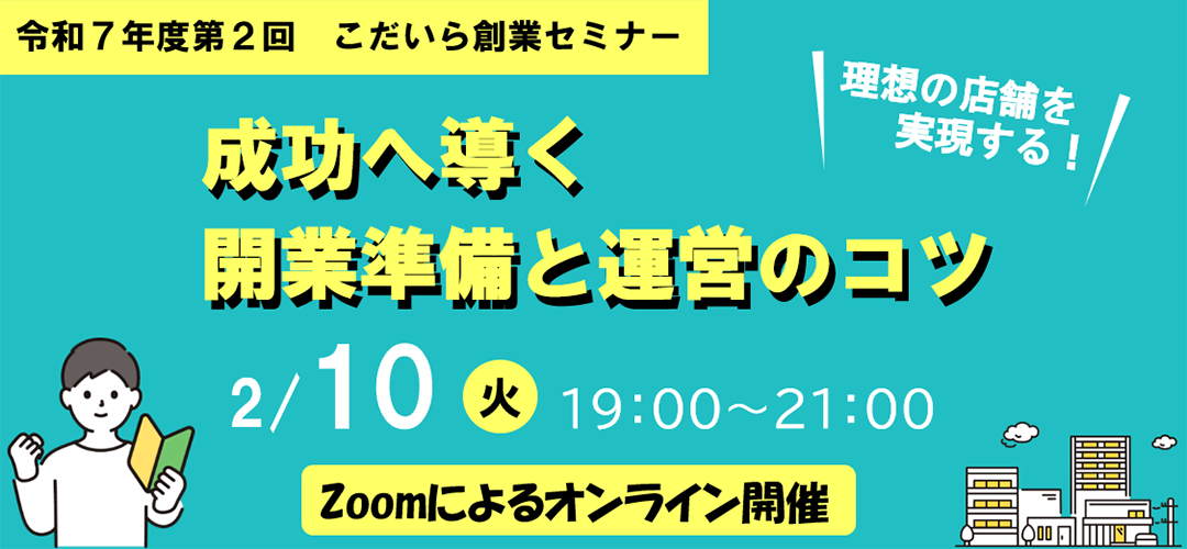 【小平市主催】こだいら創業セミナー 理想の店舗を実現する!成功へ導く開業準備と運営のコツ