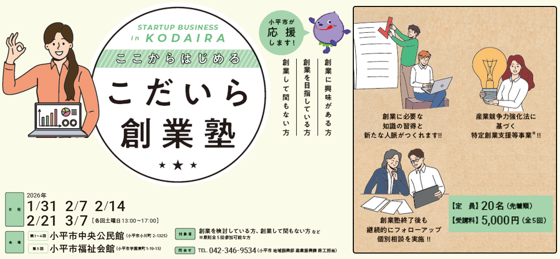 【ホームページ】https://www.city.kodaira.tokyo.jp/event/123/123835.html