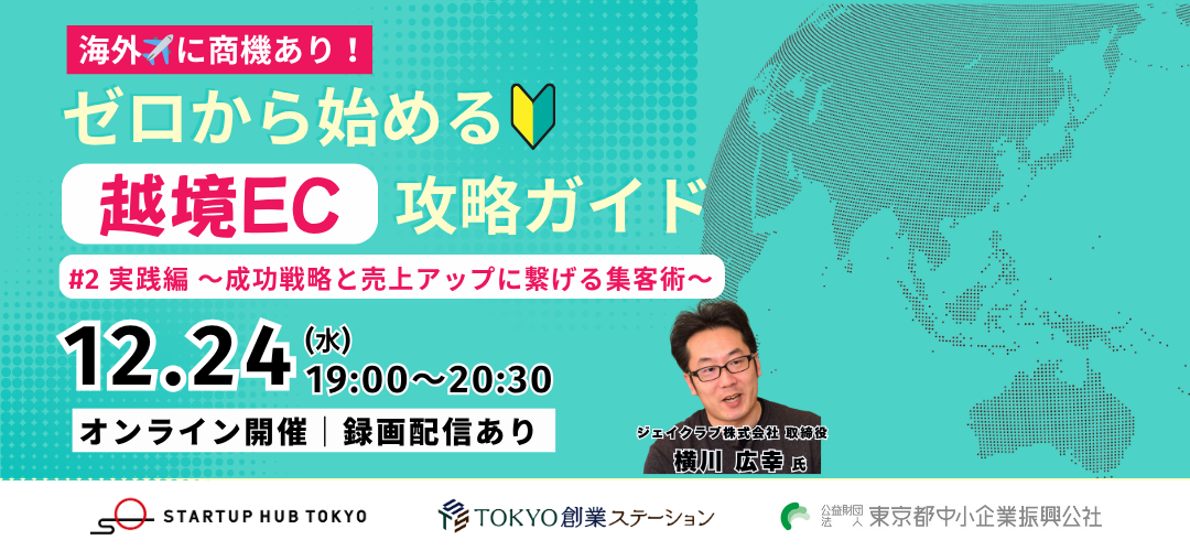 本セミナーでは、越境ECに精通したジェイクラブ株式会社の横川広幸氏が越境ECビジネスのはじめ方から実践的な集客戦略までを全2回で分かりやすく解説します!今回(第1回目)は「基礎編」として、越境ECビジネスの全体像とロードマップ(具体的な準備の進め方)についてお話します。