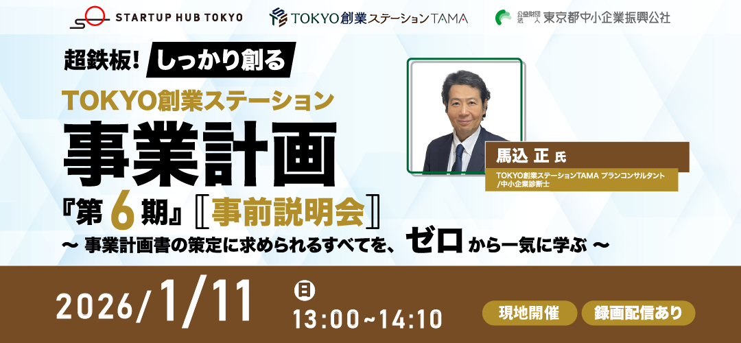 【TAMA現地開催】超鉄板!しっかり創る TOKYO創業ステーション事業計画 ~事業計画書の策定に求められるすべてを、ゼロから一気に学ぶ~ 第6期『事前説明会』