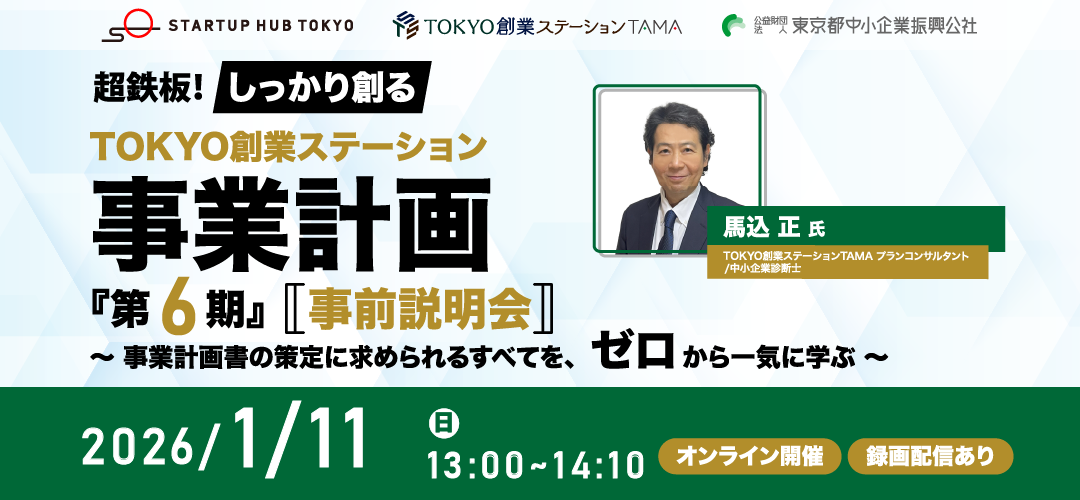 【録画配信あり】超鉄板!しっかり創る TOKYO創業ステーション事業計画 ~事業計画書の策定に求められるすべてを、ゼロから一気に学ぶ~ 第6期『事前説明会』