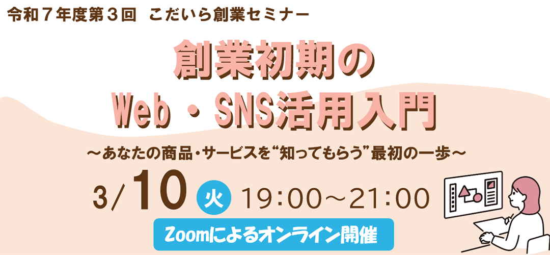 【小平市主催】こだいら創業セミナー 創業初期のWeb・SNS活用入門 〜あなたの商品・サービスを“知ってもらう”最初の一歩〜