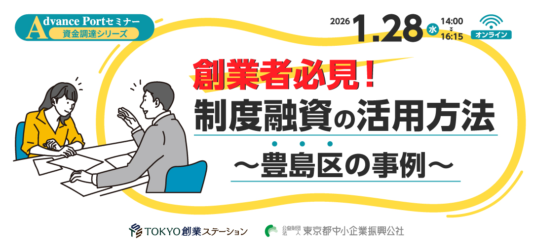 【オンライン開催】Advance Portセミナー 資金調達シリーズ 「創業者必見!制度融資の活用方法~豊島区の事例~」【録画配信あり】