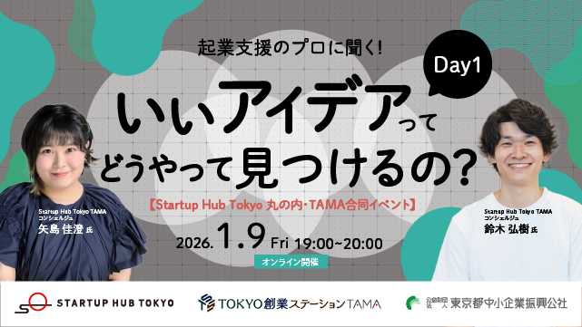 ※こちらのイベントページは、Startup Hub Tokyo 丸の内イベントスペースで実施しますが、主催はStartup Hub Tokyo TAMAです。