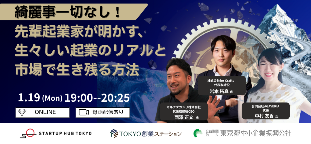 【オンライン開催】綺麗事一切なし!先輩起業家が明かす、生々しい起業のリアルと市場で生き残る方法【録画配信あり】