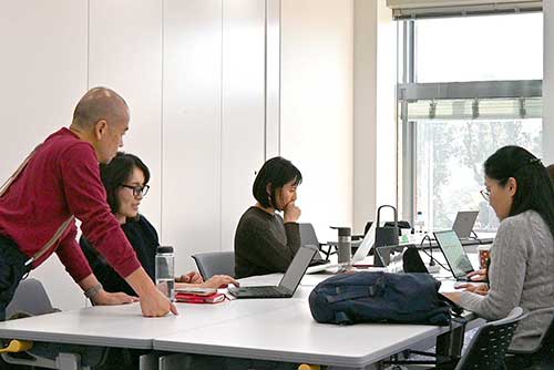 創業アイデアの具現化に向けて、少人数の仲間とともに作業を行い、ディスカッションを通して形にしていきます。