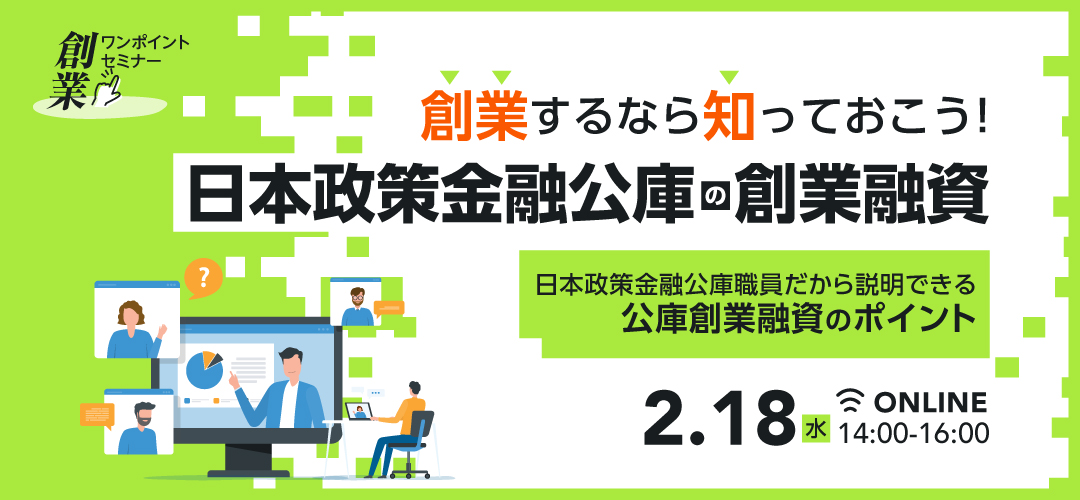 【ワンポイントセミナー】創業するなら知っておこう!日本政策金融公庫の創業融資~日本政策金融公庫職員だから説明できる公庫創業融資のポイント~