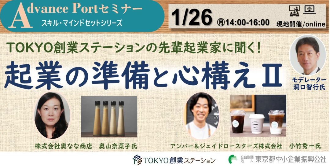 【現地開催・交流会付】Advance Portセミナー/スキル・マインドセットシリーズ 『TOKYO創業ステーション先輩起業家に聞く!起業の準備と心構えⅡ』