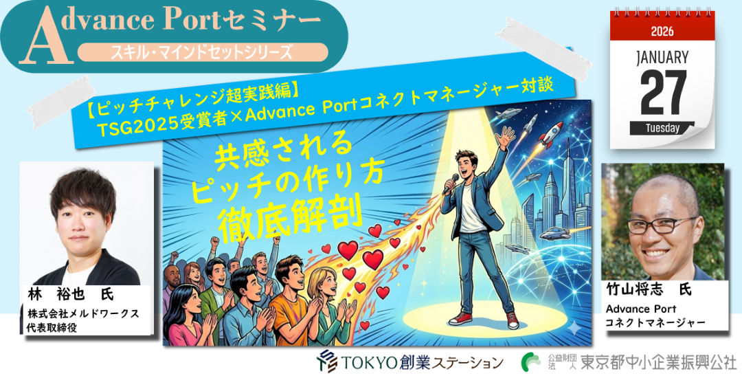 2026/01/27 14:00~16:00 (13:45開場 場所 : TOKYO創業ステーション3階Advace Portセミナールーム) |