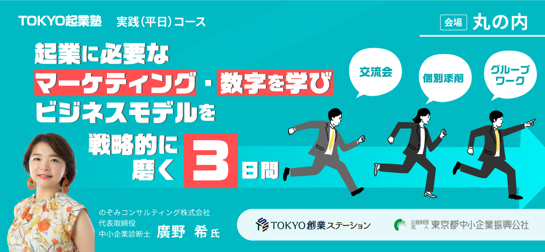 令和8年度 TOKYO起業塾 実践コース第1回【起業に必要なマーケティング・数字を学びビジネスモデルを戦略的に磨く3日間】