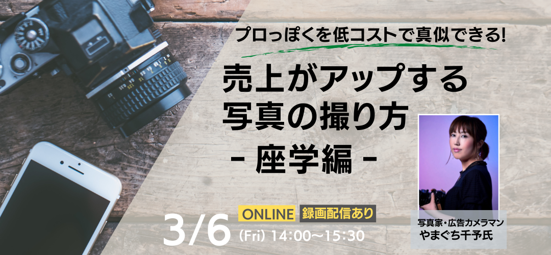 プロっぽくを低コストで真似できる!売上がアップする写真の撮り方-座学編-【録画配信あり】