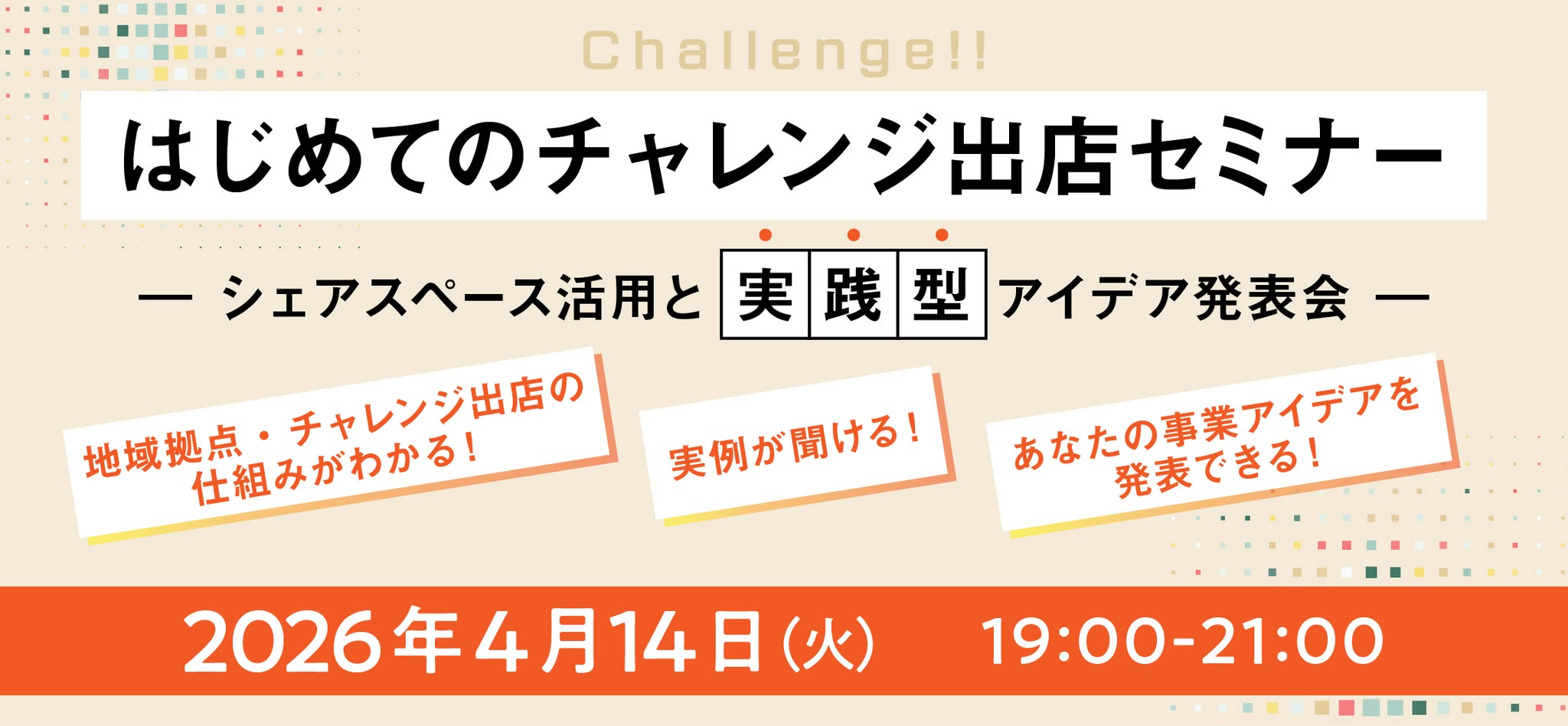 「はじめてのチャレンジ出店セミナー」 ~シェアスペース活用と実践型アイデア発表会~