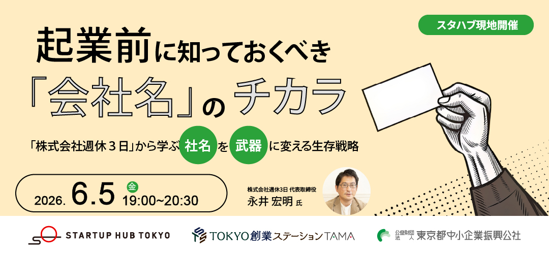 【現地開催】起業前に知っておくべき「会社名」のチカラ 〜「株式会社週休3日」から学ぶ、社名を「武器」に変える生存戦略~