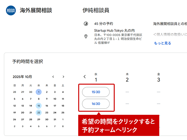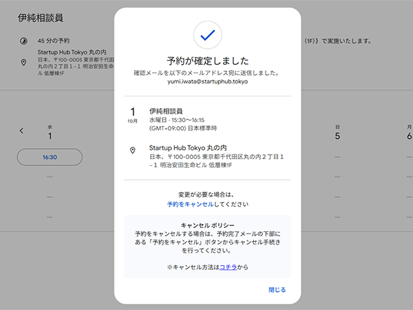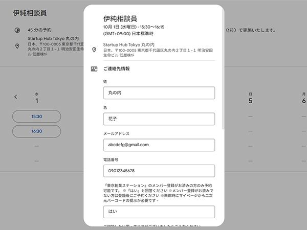 相談開始時間までに、Startup Hub Tokyo 丸の内の受付までお越しください。その際、受付にて「海外展開相談をご予約されている旨」をお伝えください。