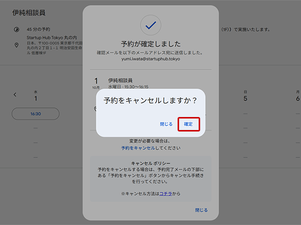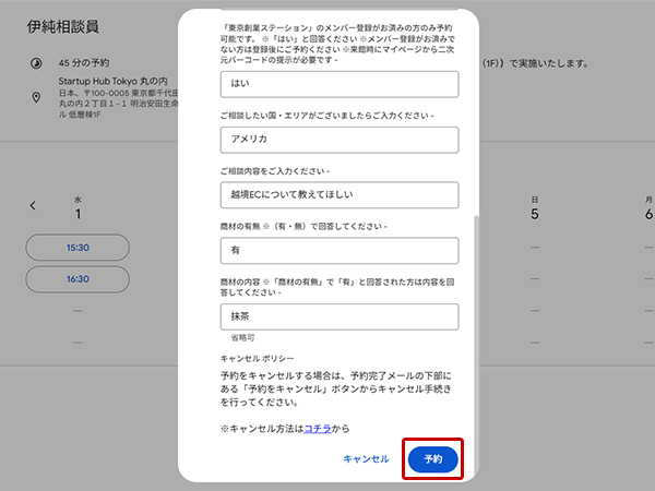 【予約】ボタンをクリック -