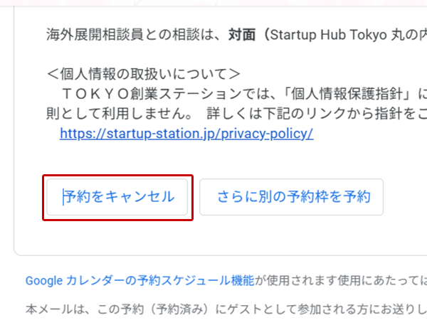 予約詳細ページ下部の「予約をキャンセル」をクリック