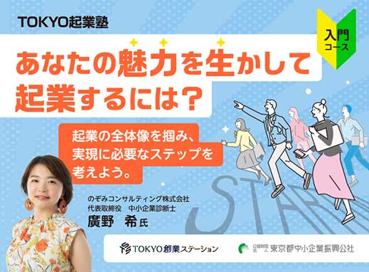 ※募集は、セミナー当日の約1.5カ月前から開始します。募集開始はこちらのページ、TOKYO 創業ステーションメールマガジン等で告知いたします。